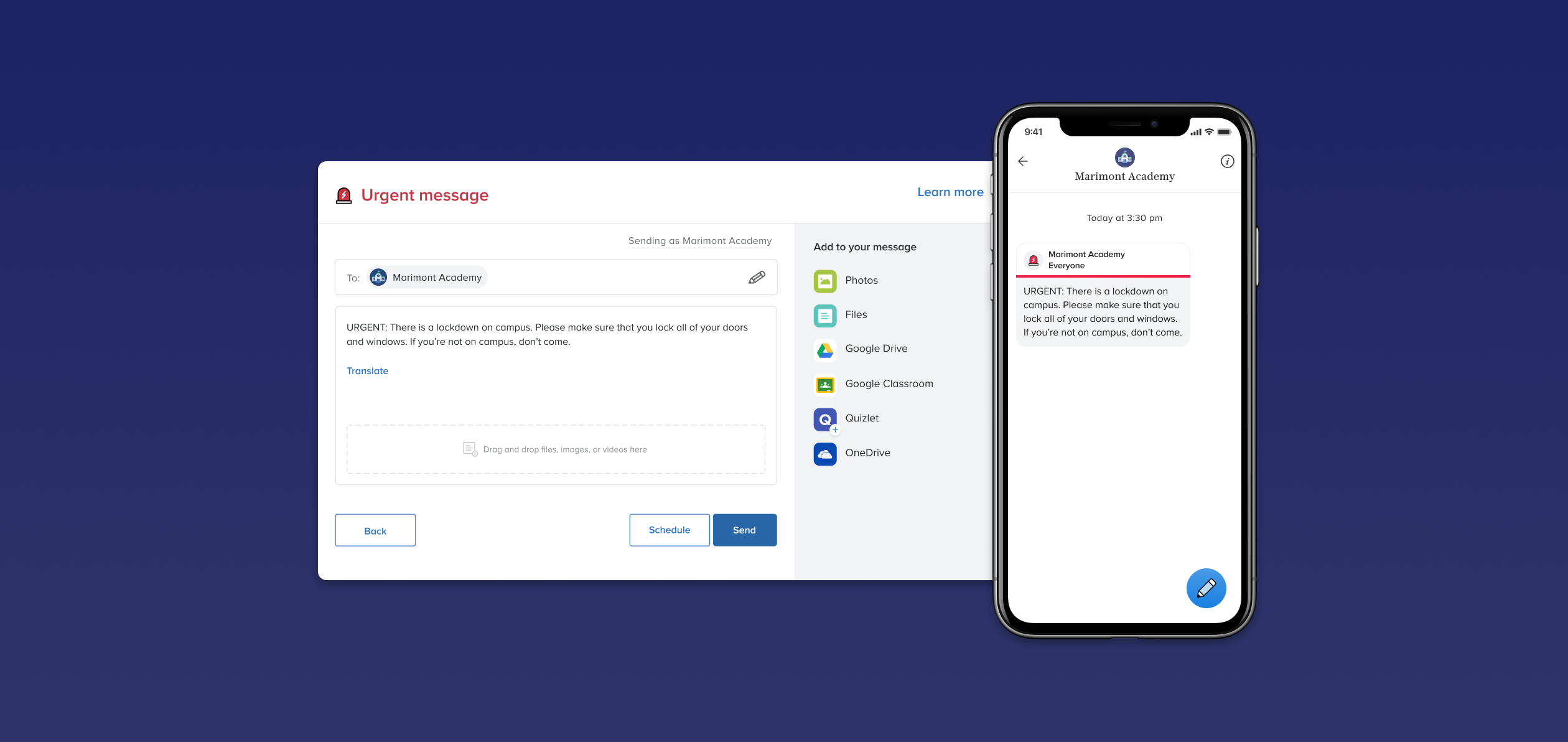 And to make things even easier, you can send urgent messages from your phone or computer, just like any other message on Remind—because in an emergency situation, the last thing you have time for is dealing with a complicated messaging system.